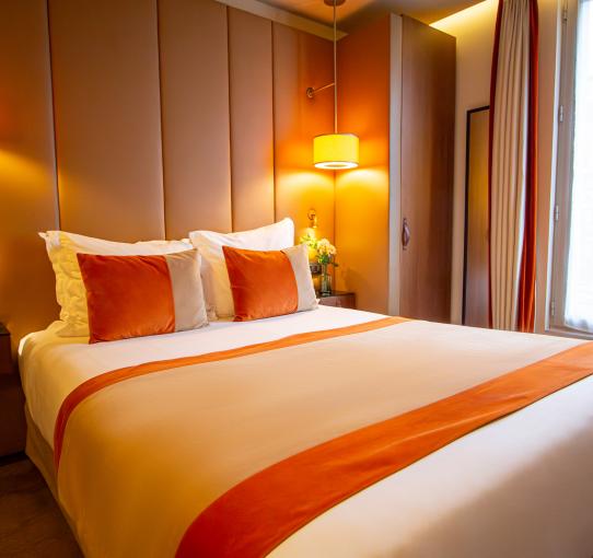 Offrez-vous le raffinement délicat et le confort absolu des Chambres Deluxes lors de votre escapade parisienne. Une décoration suave, du mobilier élégant et confortable, des attentions sur-mesure... Tout est pensé pour vous faire réviser votre géographie du bonheur.